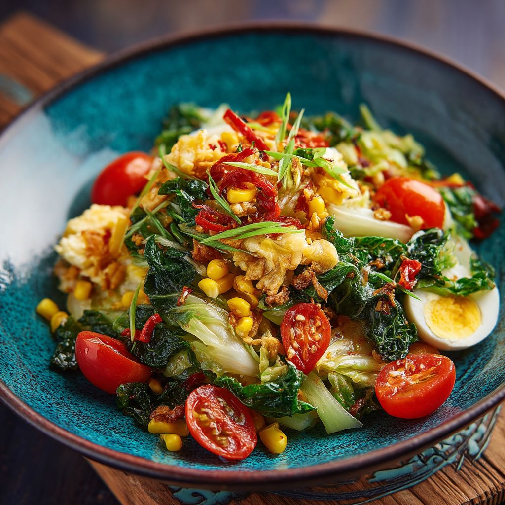 Салат с пекинской капустой, кукурузой, яйцом и помидорами